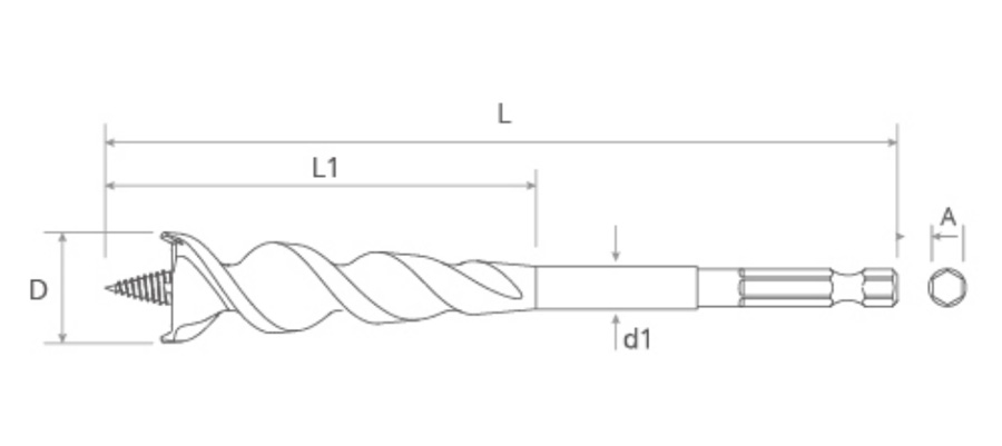 Selvmatende skruespiss gir rask boring i harde og myke tresorter, for presis og enkel boring.