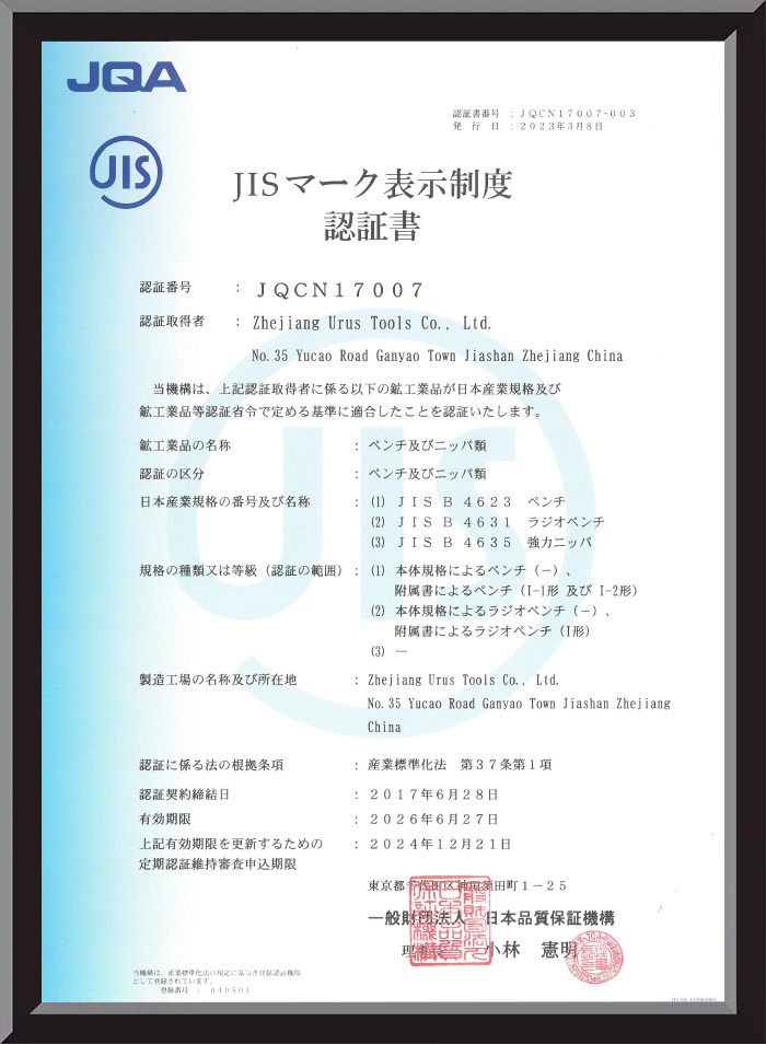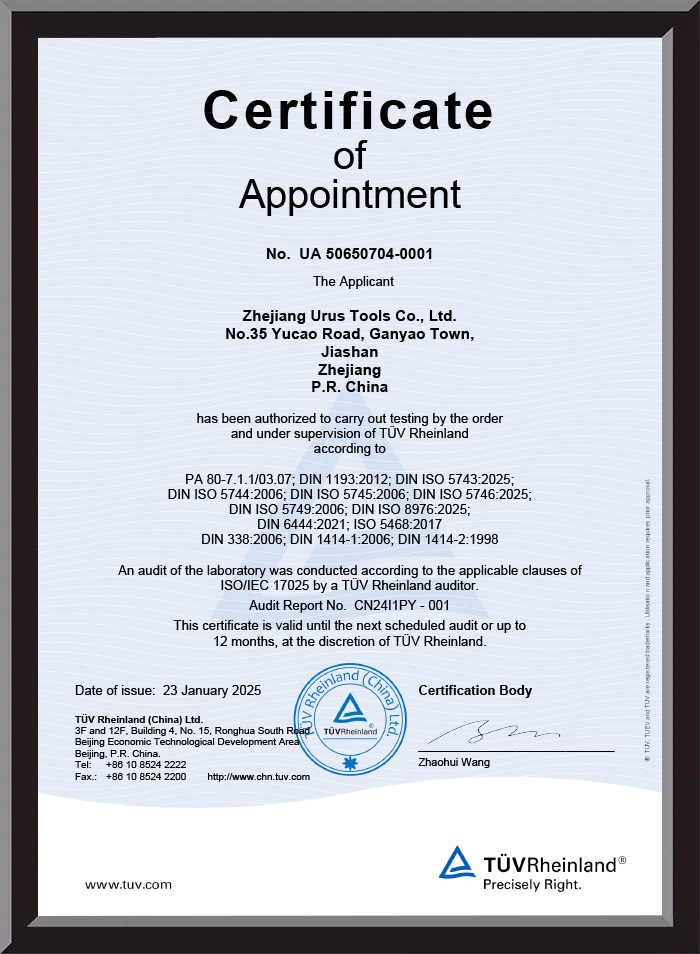 Zhejiang URUS Tools Co., Ltd. ble grunnlagt i 1991 og ligger i Ganyao-byen, Jiashan-byen, Zhejiang-provinsen, og dekker et område på 36 000 kvadratmeter, med et fabrikkområde på 65 000 kvadratmeter, med optimale transportforbindelser til Shanghai og Hangzhou (høyhastighetstog, flyplass, motorvei osv.). Vi har oppnådd ISO9001:2015-sertifisering. Gjennom kontinuerlig forretningsutvikling har selskapet vårt blitt tildelt titlene nasjonalt høyteknologisk foretak, Jiaxing patentmodellforetak, kommunalt forsknings- og utviklingssenter, kjent varemerke, sivilisert foretak, og så videre.